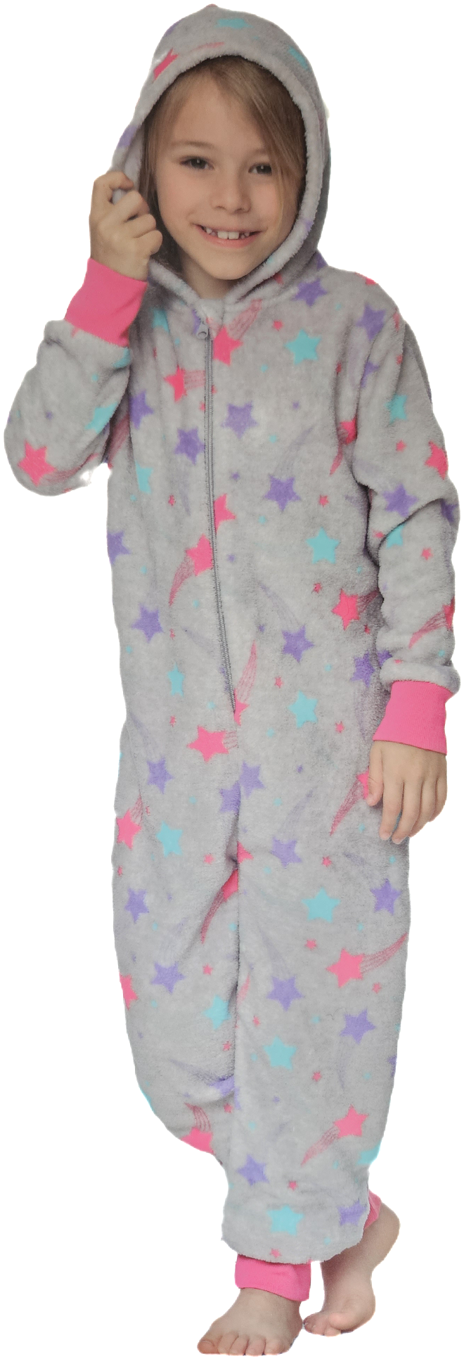Blijf lekker warm in de winter of lekker voor na het zwamen met deze sterren kids onesie.
