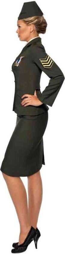 Officierenkostuum voor vrouwen - Dit donkergroene officierenkostuum voor vrouwen bestaat uit 3 delen. De rok heeft een gecentreerde taille. Het jasje is mooi afgewerkt en draagt een Frans insigne, een pet maakt uw kostuum helemaal compleet (Schoenen niet inbegrepen). Dit kostuum is perfect voor uw verkleedfeestjes."