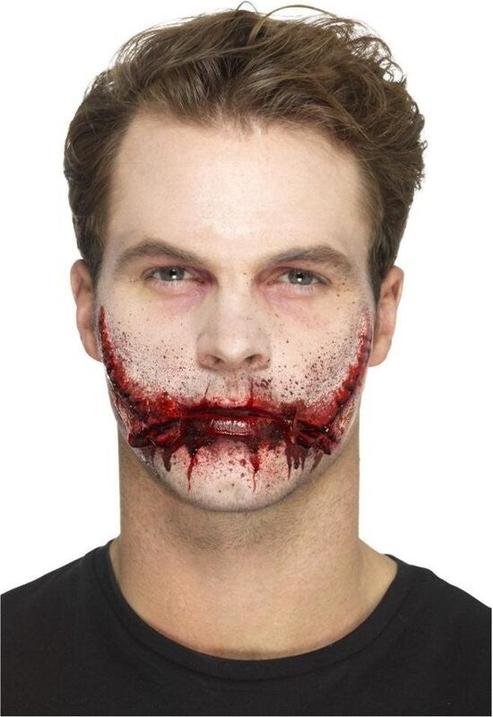 Smiffys Make-Up FX, Latex Stitched Smile Wounds, Red, with Adhesive