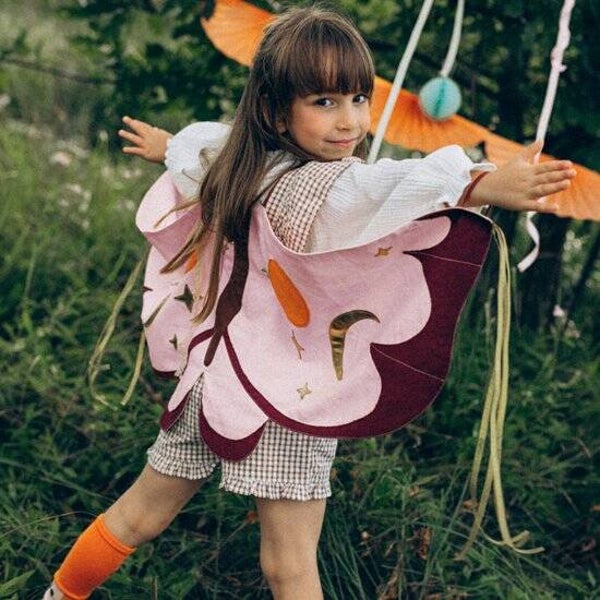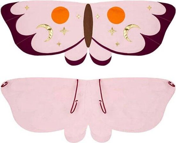 In de verpakking zit één set vleugels. De vleugels zijn gemaakt van stof. Ze zijn roze met paars van kleur en ze zijn voorzien van leuke details. Zoals gouden sterren en een halve maan. De vleugels zijn geschikt voor kinderen van 3-7 jaar.