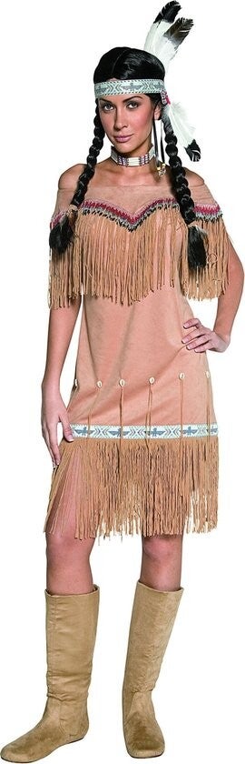 "Indianen pak voor dames - Dit Indianen kostuum voor vrouwen bestaat uit een jurk met lange franjes aan de onderkant en over de boezem. Ter hoogte van de heupen zijn ook kleine schelpjes bevestigd met slierten (schonen hoofdband, ketting en pruik niet inbegrepen). Deze Indianen jurk voor vrouwen is ideaal om je als Indiaan te kleden tijdens carnaval!"
