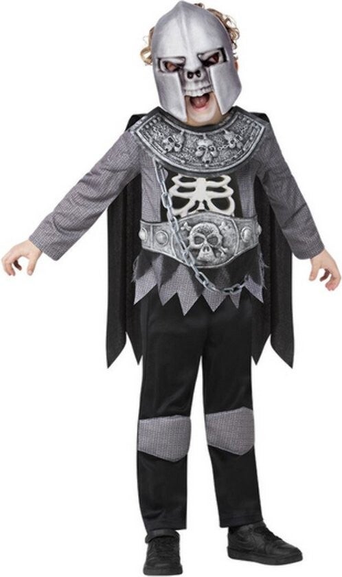 Word een angstaanjagende krijger uit het graf met dit Deluxe Skelet Ridder Kostuum van Smiffy's! Het kostuum bestaat uit een top met stevig EVA-borstpaneel, een lange cape, een broek en een gedetailleerd EVA-masker. Perfect voor Halloween of een griezelige verkleedpartij!