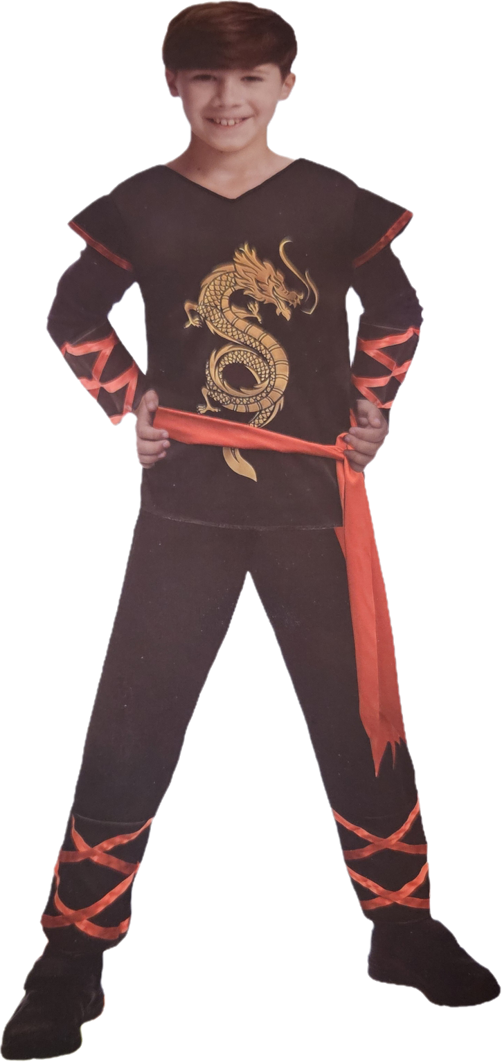 Laat je kind veranderen in een geheimzinnige ninja met dit stoere verkleedkostuum! Het pak heeft een zwart basisontwerp met opvallende rode accenten. Dankzij de zachte en flexibele stof kan je kind makkelijk rennen, sluipen en spelen. De riem en het opvallende ontwerp maken de ninja-look helemaal af.