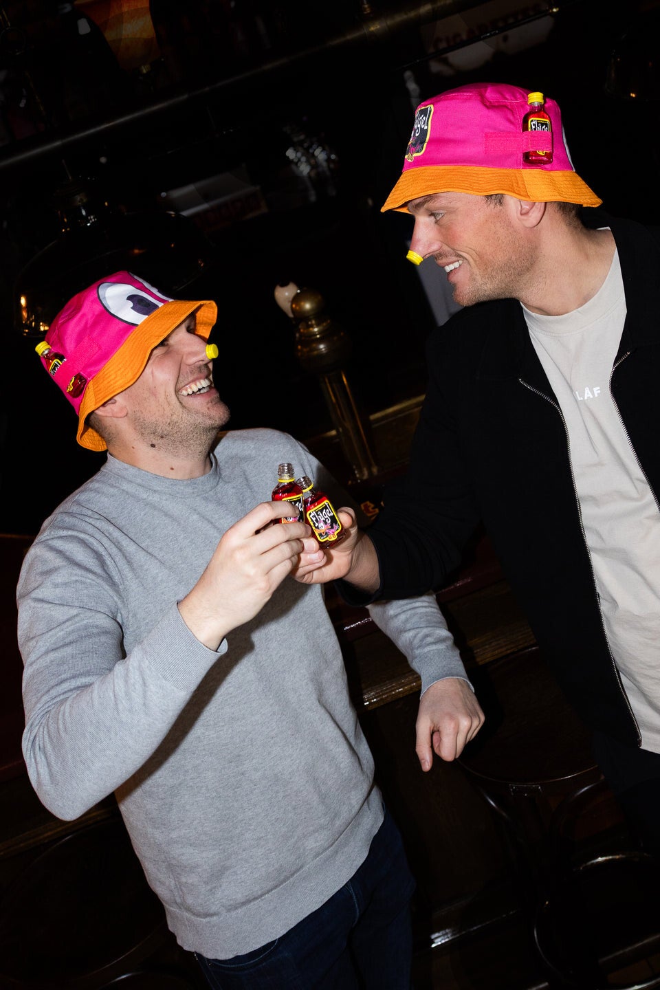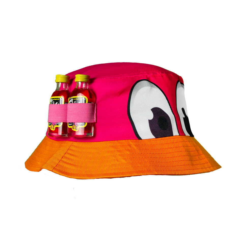 Deze bucket hat is niet alleen een leuke toevoeging aan je look, maar ook praktisch in gebruik. Aan de zijkant zit een handige elastische band waarin kleine flesjes stevig vastgezet kunnen worden. Zo heb je je drankje altijd binnen handbereik terwijl je zorgeloos blijft feesten en dansen.